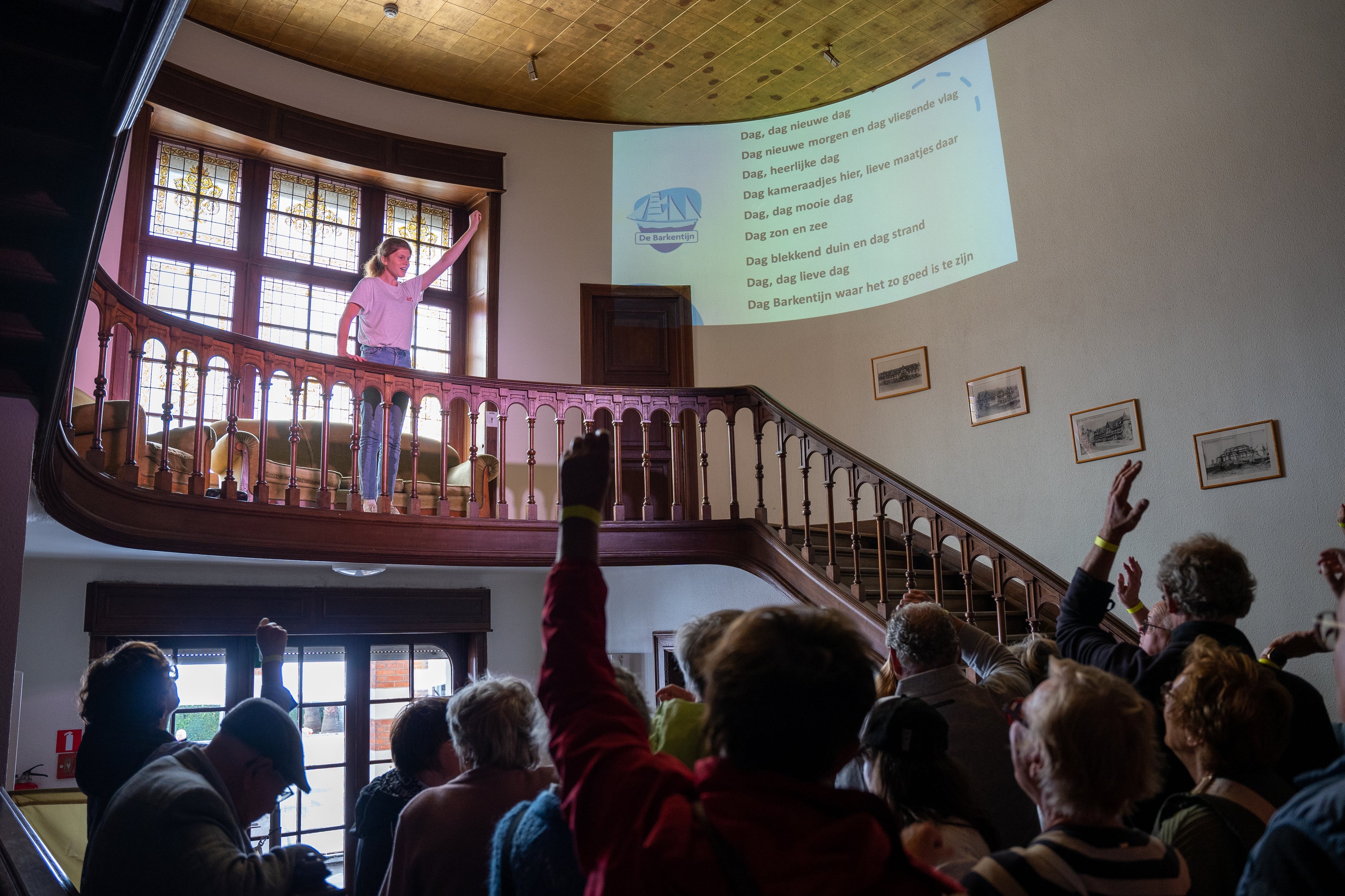 Vanuit een onderhoudend scenario meandert een heuse theatertocht doorheen de Barkentijn. In kleine groepen laten de acteurs de bezoekers, onder begeleiding, kennis maken met de historiek, de smeuïge, intrigerende en verhalen en de toekomst. Er is een live-versie gepland in de weekends rond de viering (september 2024). Er komt ook een duurzame, permanente versie zodat het jaar door groepen in De Barkentijn de kans krijgen om het gebouw te bezoeken en de verschillende insteken te ontdekken.